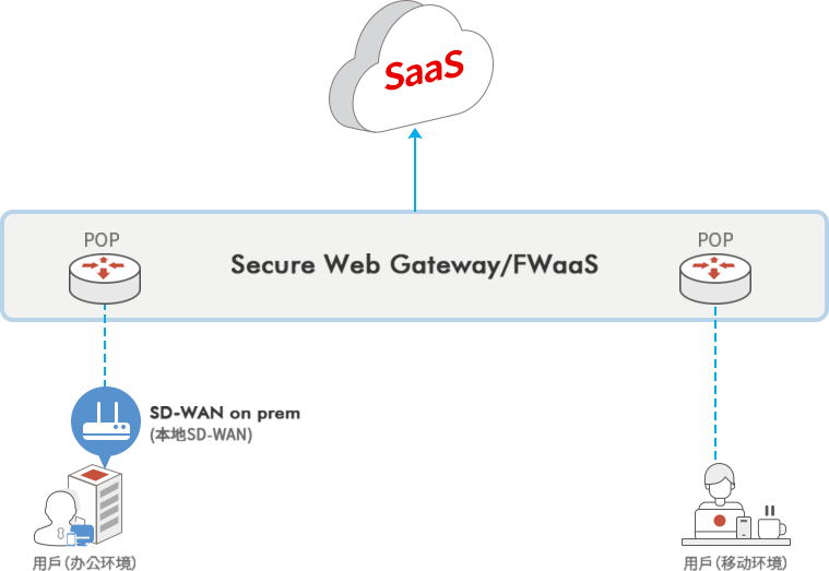 与传统VPN的处理方式不同,安全服务均由Web网关提供商在云上完成安全内容的检测,并且在各个接入点完成检测内容。